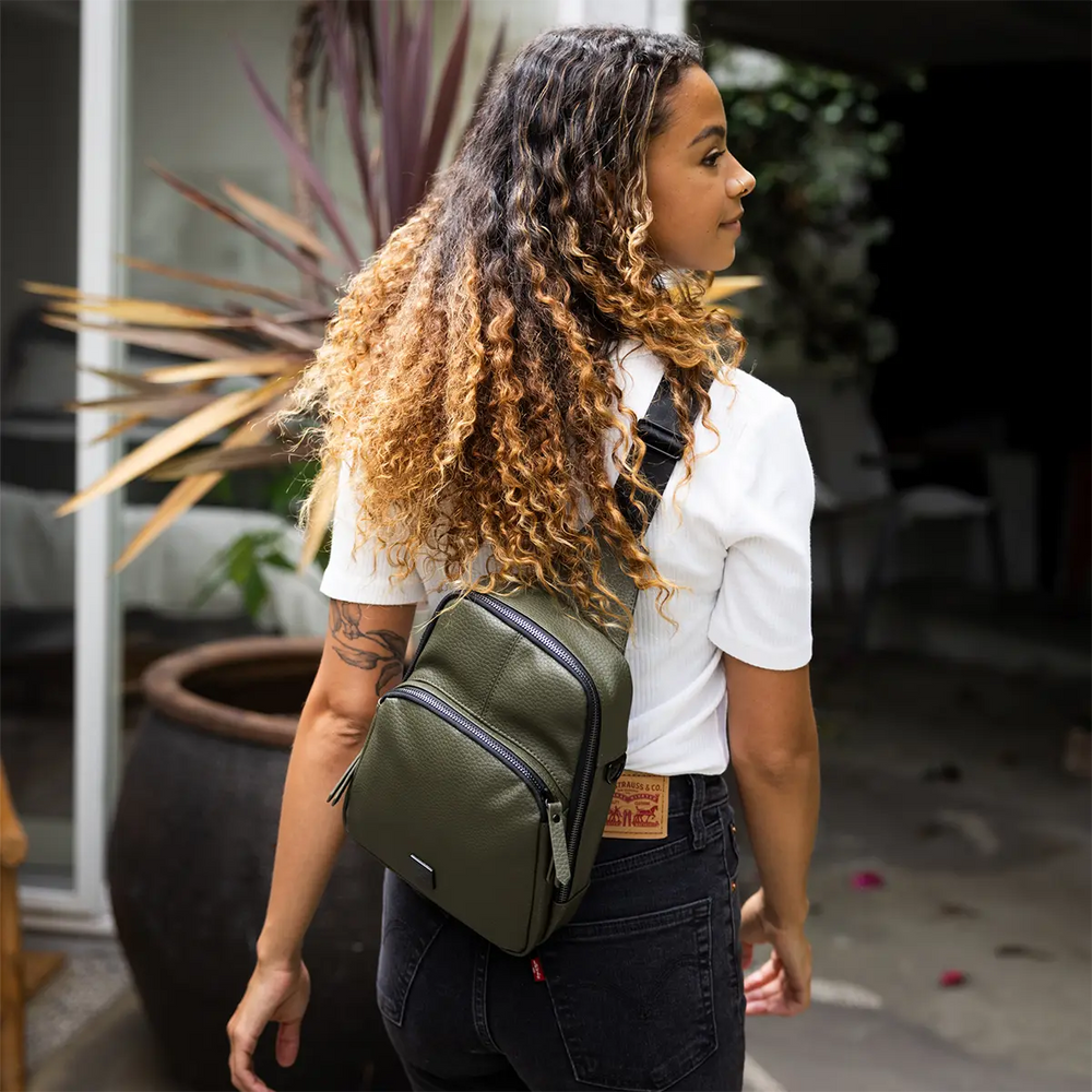 The Criss-Cross Sling is the essential for your essentials. It's light and compact with the cleverly placed pockets and design  that still leaves room for all your must-haves. Place snacks or a small bottle in the insulated front pocket. There is plenty of room for your keys, wallet, and even a spare diaper and onesie in the spacious main compartment. A sleeve on the back is perfect for quick access to your phone. Just right for when you are packing light.