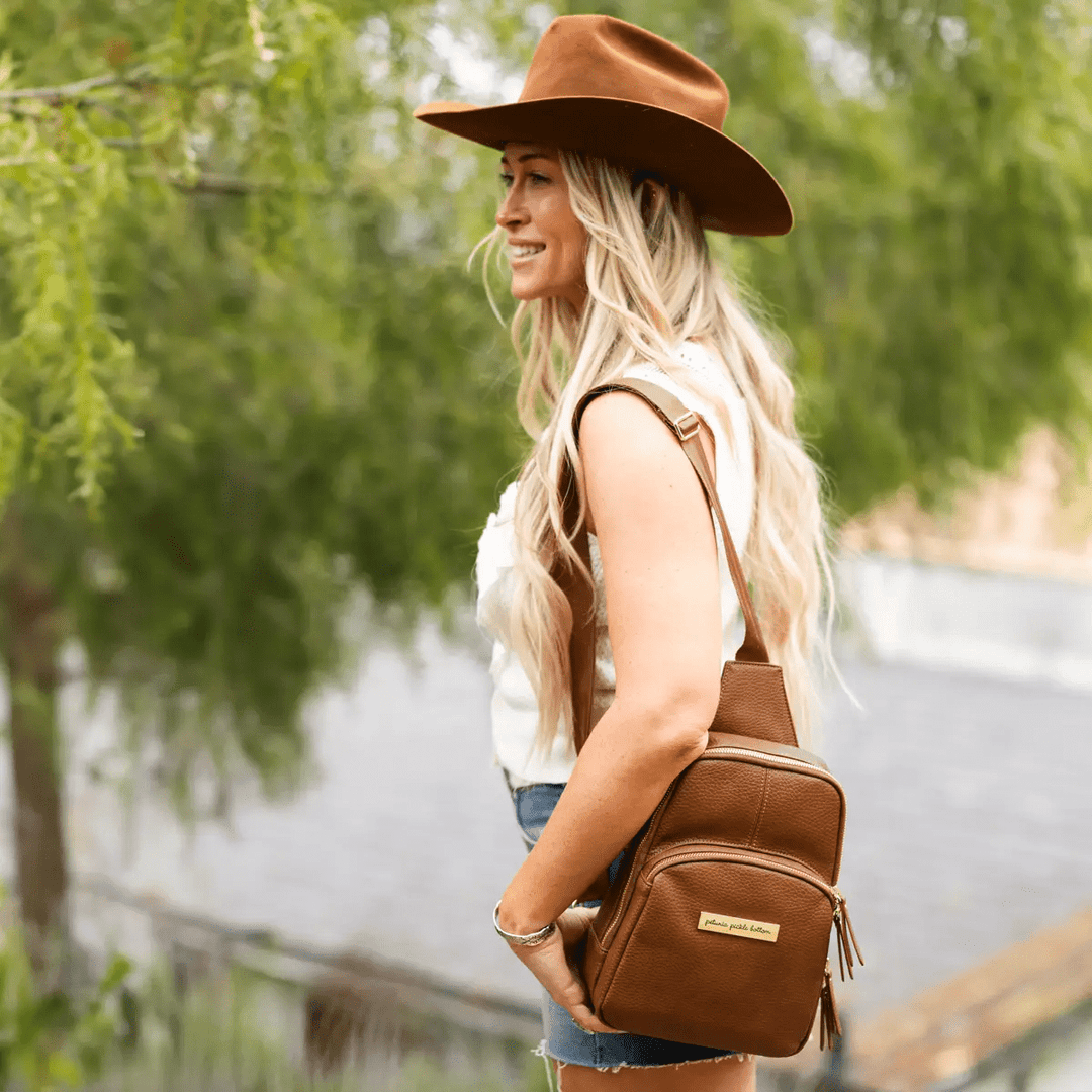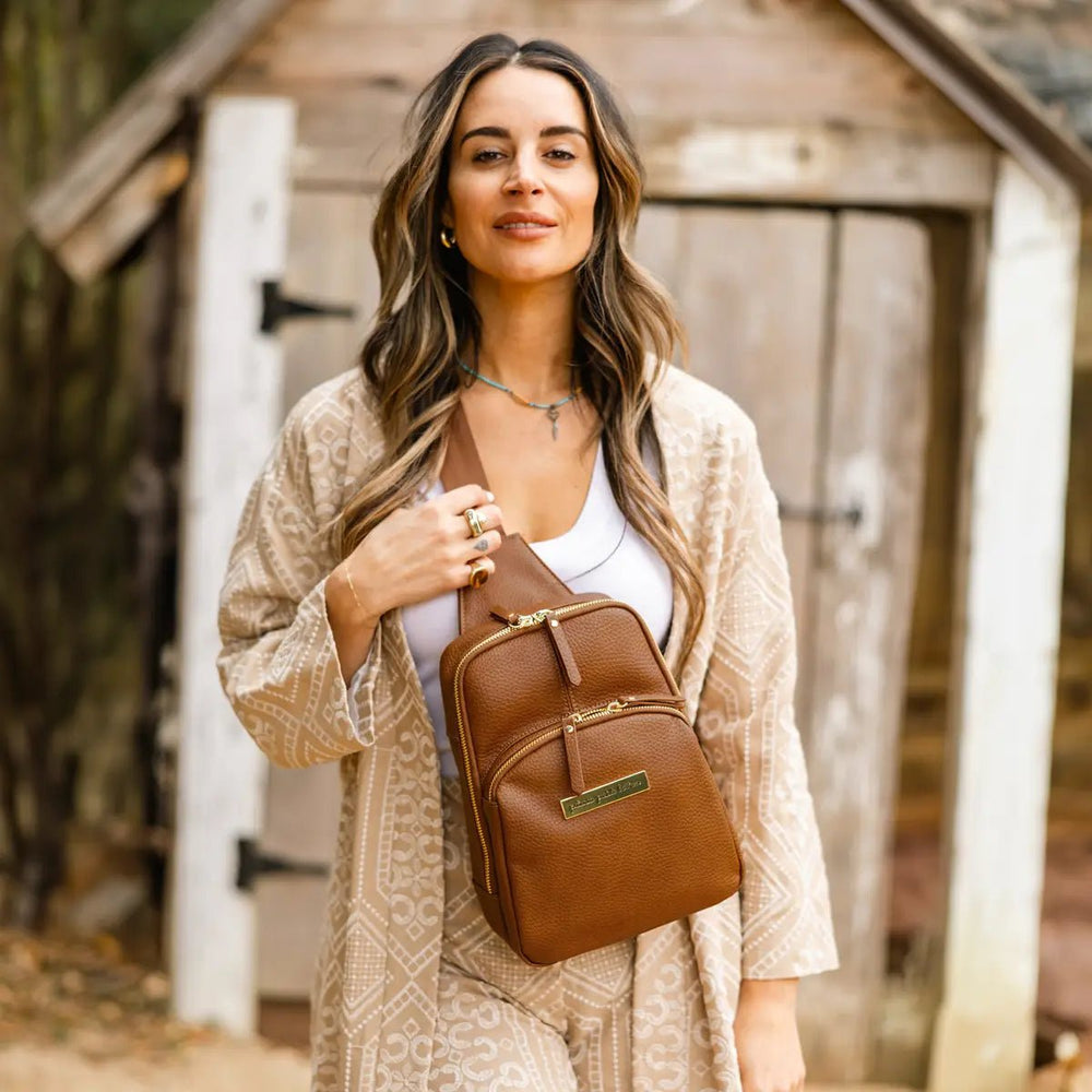 A warm neutral and classic style to compliment any ensemble. Our Cedar leatherette is crafted from a luxe vegan leather that’s beautiful and easy to care for. Naturally water-resistant and easy to wipe clean. Perfectly paired with gold colored hardware. Coordinates well with the Loom accessories.