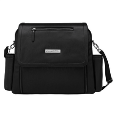 Petunia Pickle Bottom's Ebony leatherette adds a touch of classical elegance to any outfit. This gorgeous, vegan leather is naturally water-resistant and easy to wipe clean. Perfectly paired with silver colored hardware. Coordinates well with Stardust and Positive pattern accessories.